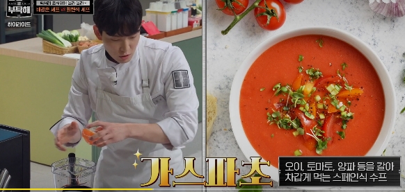 냉장고를 부탁해 배경준 용 앤 리치 냉부해 선우용녀 지중해식 조식 가스파초 수란 연어 요리 안내