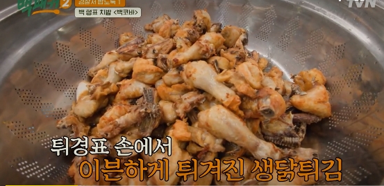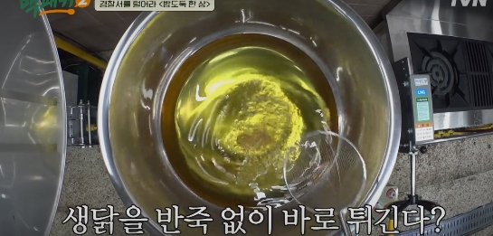 2. 생닭을 반죽 없이 바로 튀긴다.