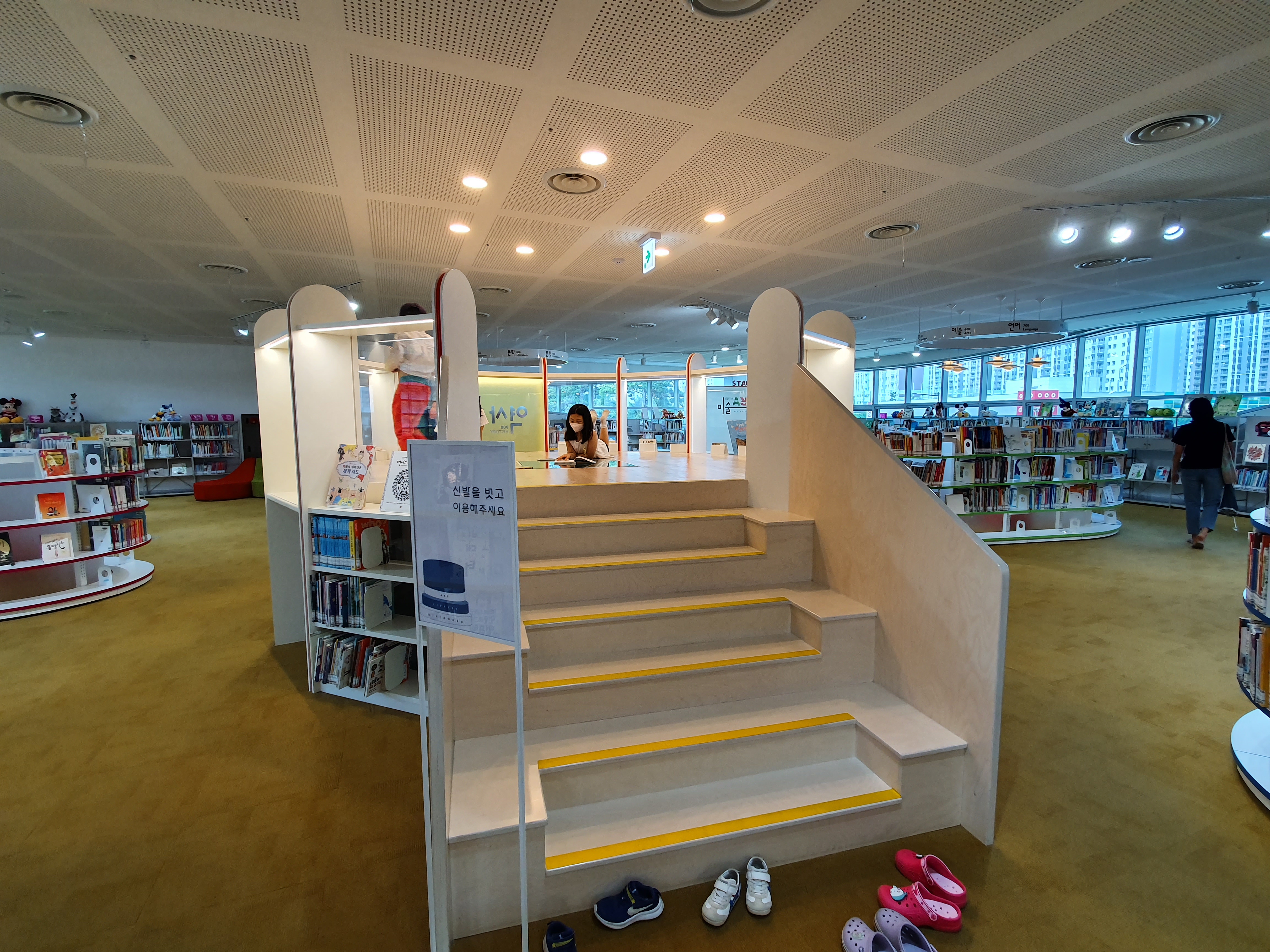 그리고 아이들이 편하게 앉아서 책을 보기도 하고 재미있는 공연도 감상할 수 있는 무대가 있습니다.
