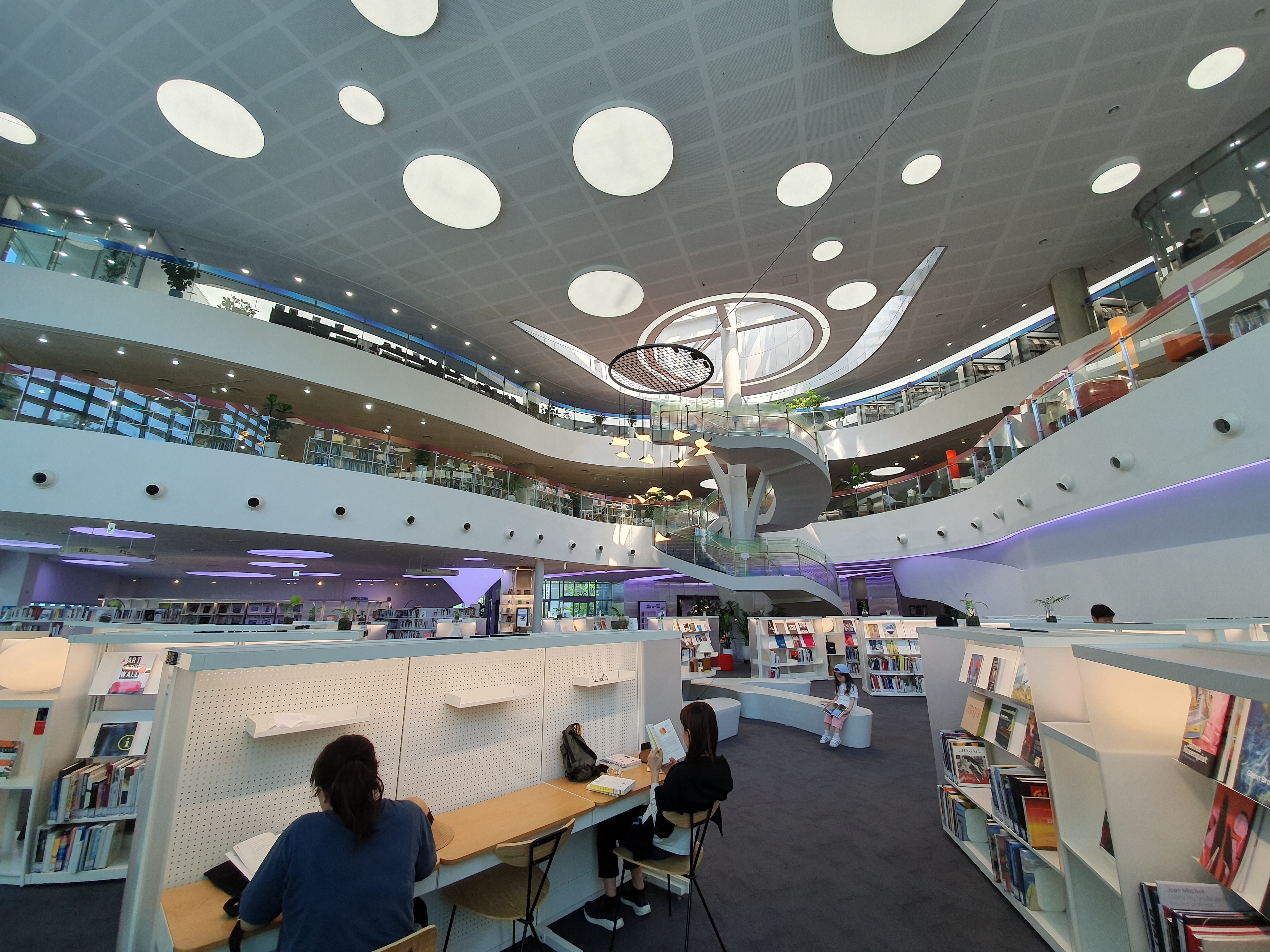 독서실 같은 공간도 마련되어 있습니다. 또 원탁 테이블과 스탠드도 있습니다.