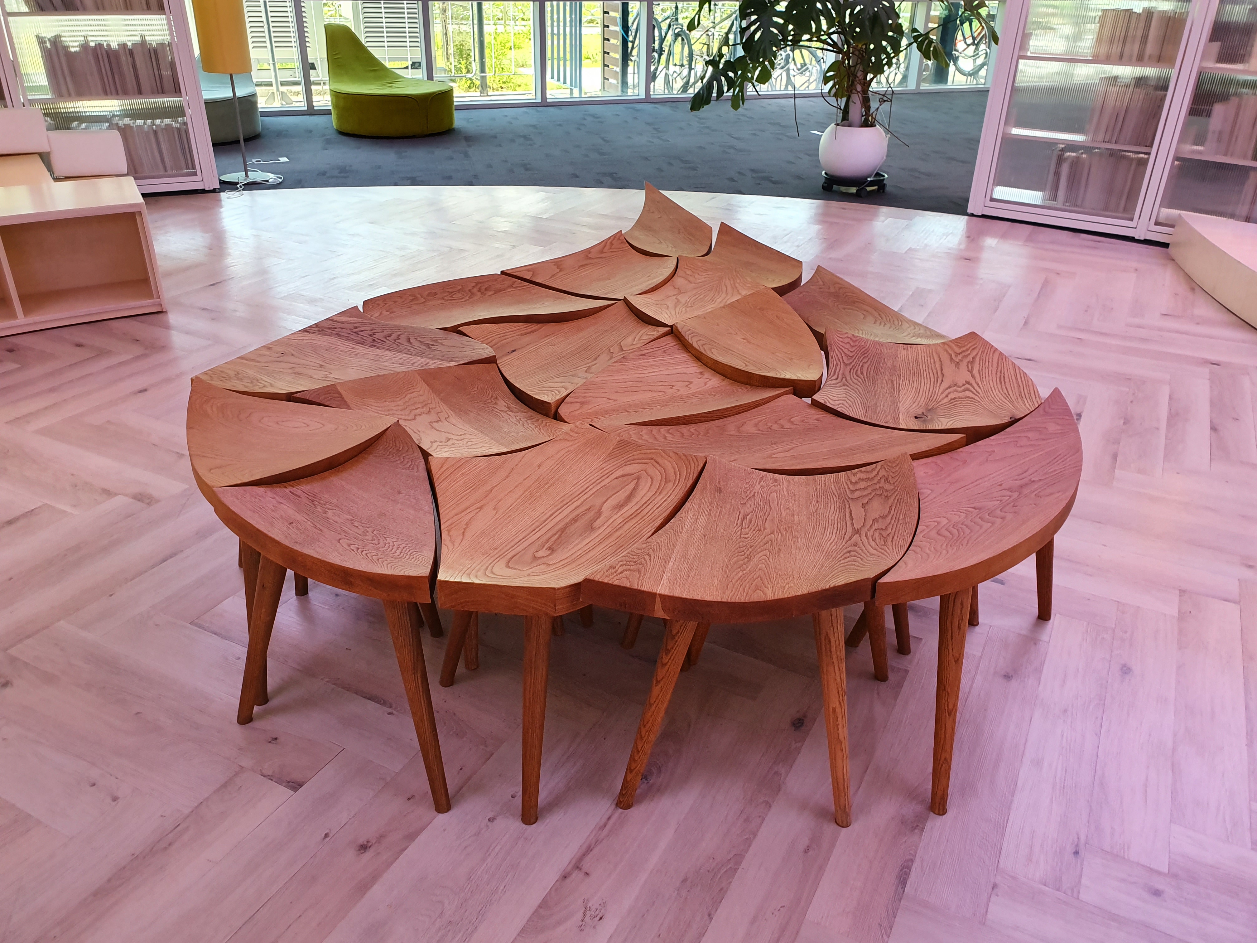 저도 처음에는 전시물인줄 알았는데 가까이서 보니 의자였답니다. 흐터지면 개인용 의자가 되고, 모이면 하나의 걸작품이 되네요. 아이디어가 빛나는 작품입니다.