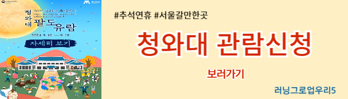 올 추석에는 청와대에서 2024 추석맞이 청와대 팔도유람 체험행사를 개최한다고 합니다.
