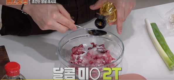 고기에 설탕을 2T 넣는다.