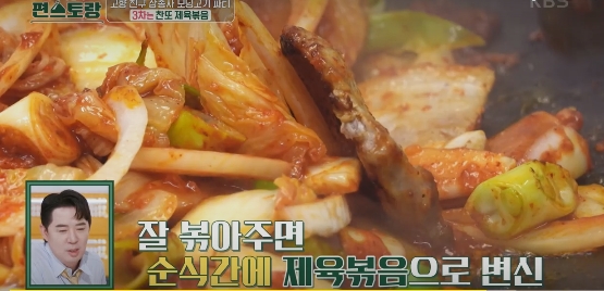 그래서 오늘은 이 3가지 코스를 즐길 수 있는 편스토랑 이찬원의 김치제육볶음 황금레시피에 대해 안내해 드리겠습니다.