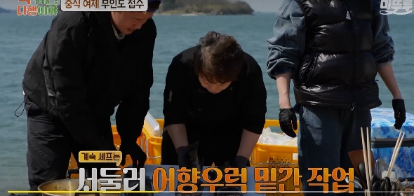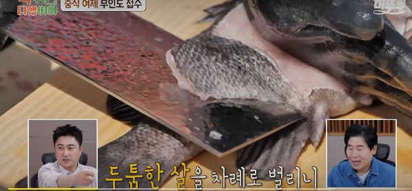 맨손으로 살아있는 우럭의 내장을 빼는 신계숙 셰프...!