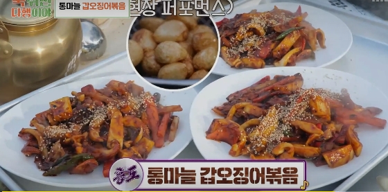 푹 쉬면 다행이야 갑오징어 요리 통마늘 갑오징어볶음 갑오징어튀김 말똥성게김밥 레시피 안내